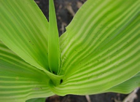 Las plantas presentarán síntomas visuales en caso de deficiencia de azufre. La deficiencia de azufre en el maíz puede dar lugar a un amarillamiento general de la planta, similar a la deficiencia de nitrógeno; o como clorosis intervenal, similar a la deficiencia de magnesio o zinc. El azufre no se transloca fácilmente en las plantas, por lo que los síntomas aparecerán primero y serán más pronunciados en las hojas superiores más jóvenes. Las deficiencias de nutrientes móviles, como el nitrógeno, aparecerán primero en las hojas inferiores, ya que los nutrientes se removilizan hacia los tejidos de la planta en crecimiento.