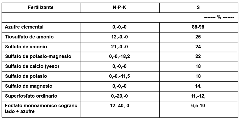 Históricamente, se pensaba que las deficiencias de azufre eran una preocupación estrictamente en suelos arenosos, pero en los últimos años, las deficiencias se han vuelto más frecuentes en una variedad de tipos de suelo. Las deficiencias de azufre pueden aparecer en las cimas de las colinas o en las laderas donde los suelos están erosionados y tienen poca materia orgánica. Las deficiencias son más comunes en los suelos arenosos u otros suelos poco orgánicos debido a su reducida capacidad de suministrar azufre y a las pérdidas debidas a la lixiviación.